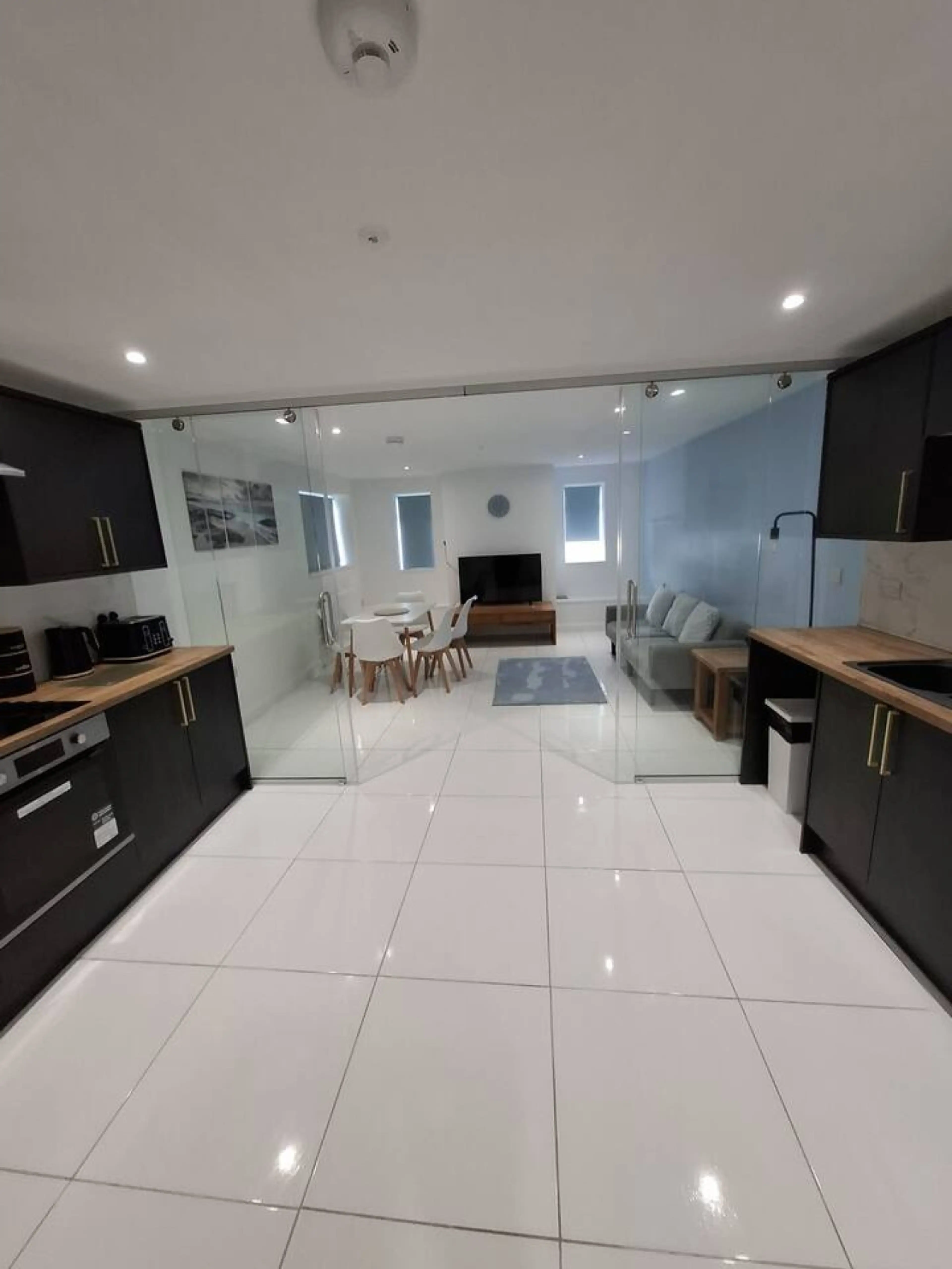 Spacious 3-bedroom, 3-bathroom First-Floor Flat near Chepstow Station, offering bright and comfortable living spaces for families, groups, or colleagues. The flat includes a fully equipped kitchenette and dining area, making it easy to enjoy meals together or unwind after a day exploring the area. ...